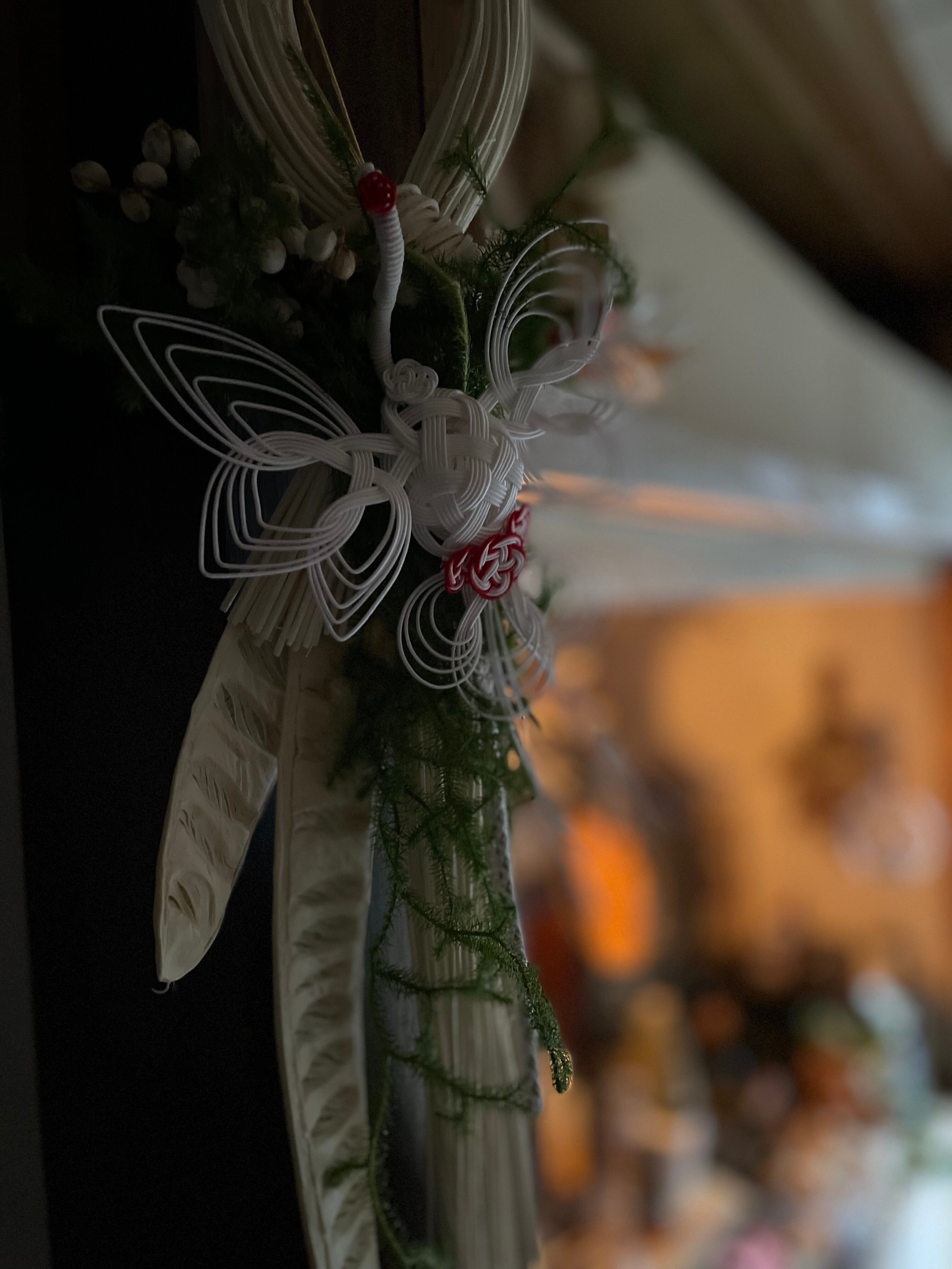 空へ飛び立つような縁起の良い鶴 水引作家さんの鶴を使っています。 なた豆ホワイト 生花の日陰カズラを使用しています。 ドライになります。 サイズ 約50×16